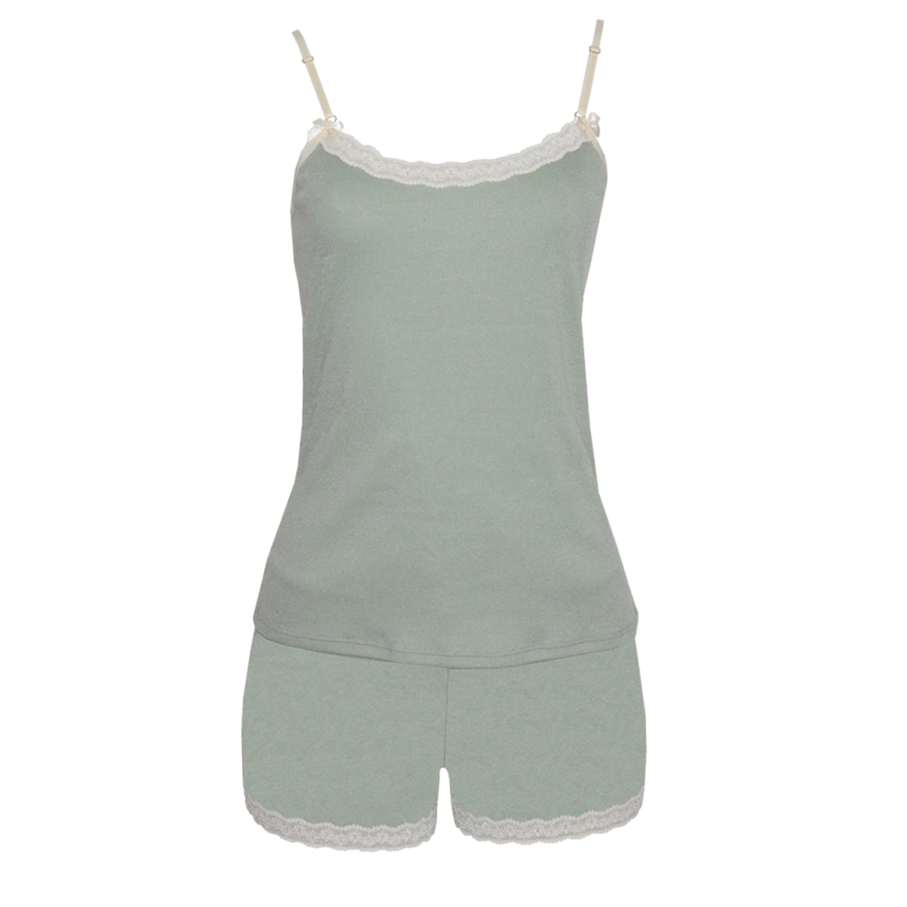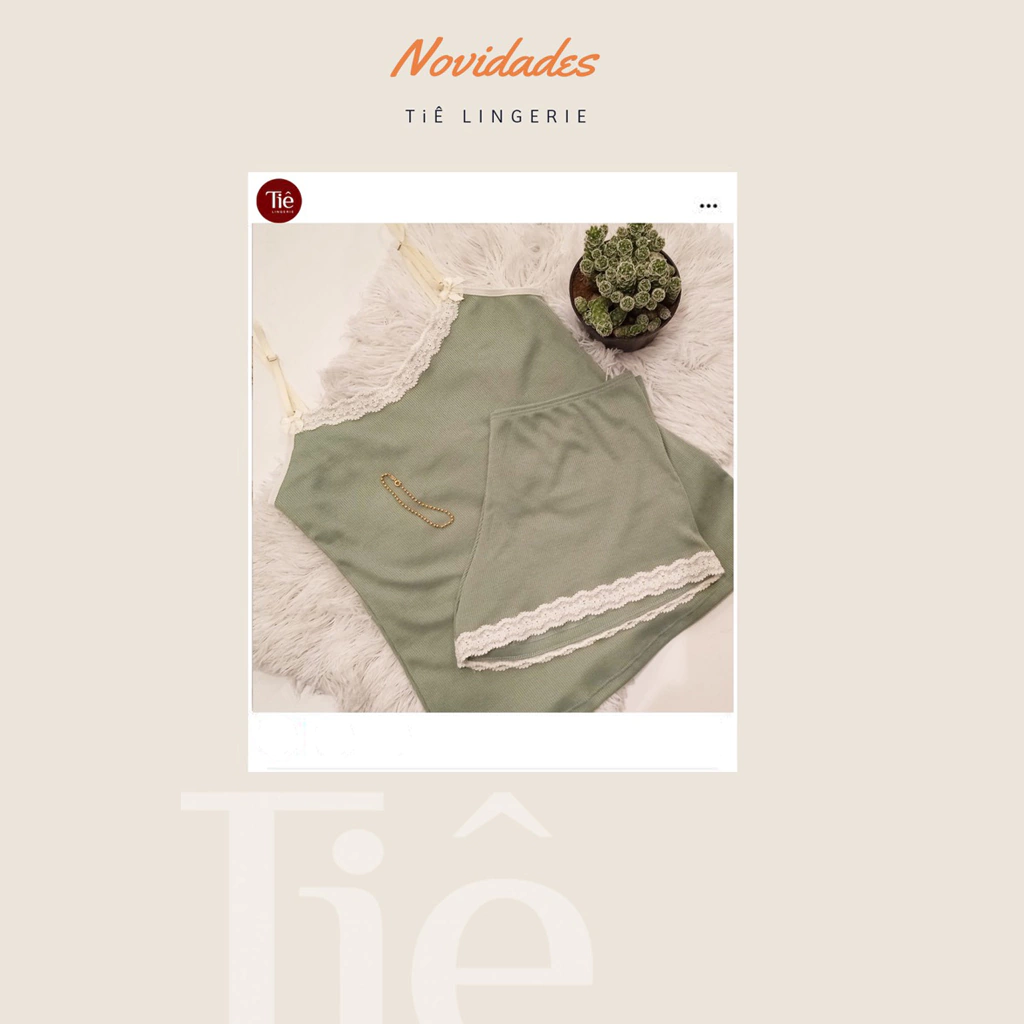Short Doll canelado com detalhe em renda, possui alças ajustáveis.