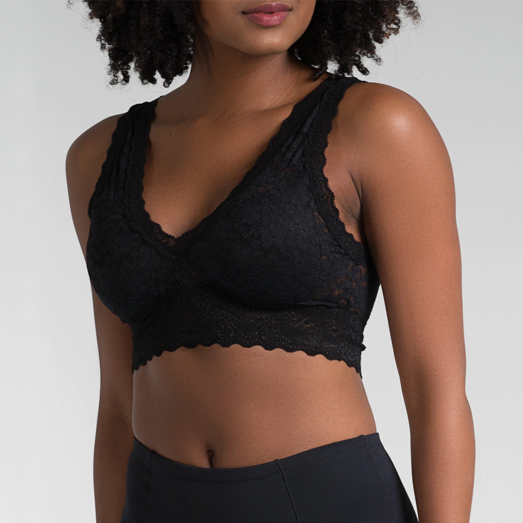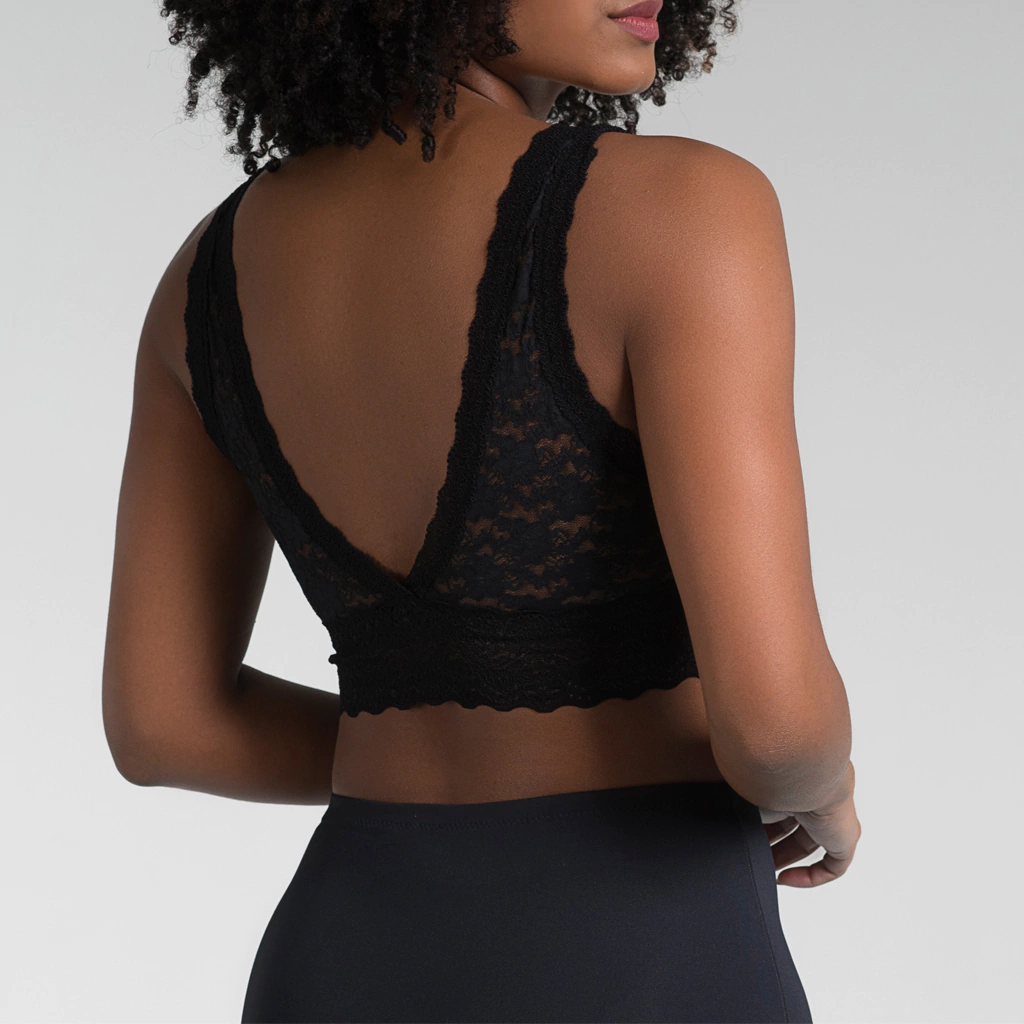 Top de renda com bojo e sem aro.